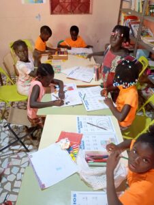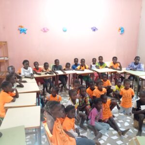 Además apoyamos el aula del jardín de infancia en la escuela pública de Varela, con un total de 29 alumnos (16 niñas) que van a la guardería y de las que se encargan Djibill y Fatu todas las mañanas. Hasta este año las clases de preescolar no eran obligatorias, pero el Ministerio está empezando a implementarlas de forma sistemática en las distintas regiones (con diferentes grados de cobertura), pues se han dado cuenta que son muy necesarias para el proceso de alfabetización temprana del alumnado. Por otro lado, en nuestra sede continúa funcionando la biblioteca con un sistema de préstamos de libros para llevar a casa.