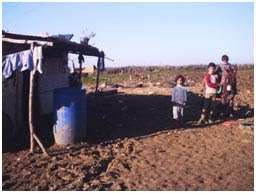Estas dos fotografías están tomadas en las afueras de la ciudad de Ksar el Kebir. Pertenecen a la vivienda de Batul, su marido y sus cuatro hijos. Las lluvias del último mes han sido un desastre, pues como veis la chabola está en medio del barro, en tierras de labranza no urbanizables, sin luz ni agua potable. El bidón está puesto para recoger el agua que va cayendo y aprovecharla.