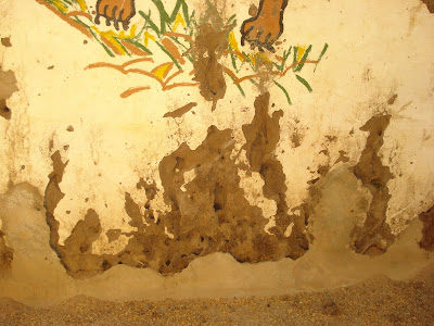 A regreso del viaje que hicieron en Noviembre nuestros amigos de Silo a Guinea Bissau nos presentaron un serio problema que apareció en la escuela de D´Embandje. El asunto es, que los muros han sido atacados por una plaga de termitas y están provocando grandes agujeros. El problema se agrava más porque durante la noche algunas serpientes encuentran fácil la manera de entrar y dormir allí, con el consiguiente peligro para los niños. De momento se han suspendido las clases porque la estructura ha sufrido bastante y las serpientes no se quieren ir.